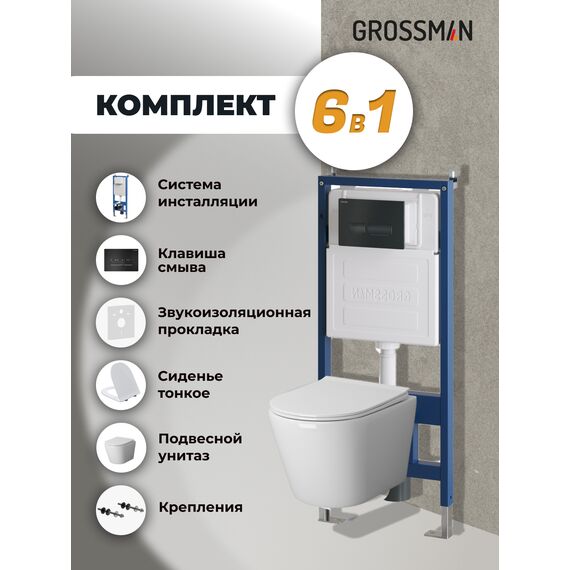 Комплект 3 в 1: Grossman инсталляция 900.K31.01.000+клавиша 700.K31.03.210.210 черный матовый+унитаз GR-4478S, 3 места