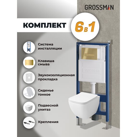 Комплект 3 в 1: Grossman инсталляция 900.K31.01.000+клавиша 700.K31.03.300.300 золото глянцевый+унитаз GR-4447S, 3 места