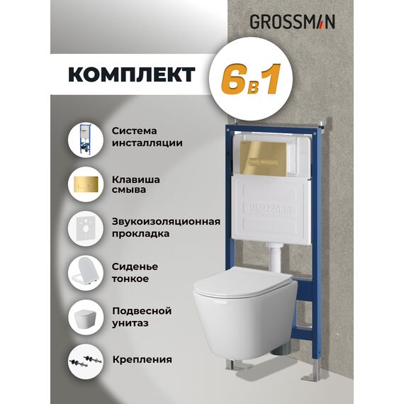 Комплект 3 в 1: Grossman инсталляция 900.K31.01.000+клавиша 700.K31.03.300.300 золото глянцевый+унитаз GR-4479SQ, 3 места
