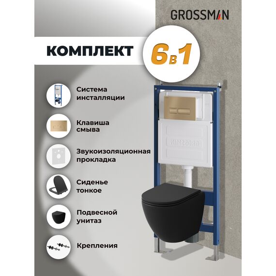 Комплект 3 в 1: Grossman инсталляция 900.K31.01.000+клавиша 700.K31.03.310.310 золото матовый+унитаз GR-4455BMSQ, 3 места