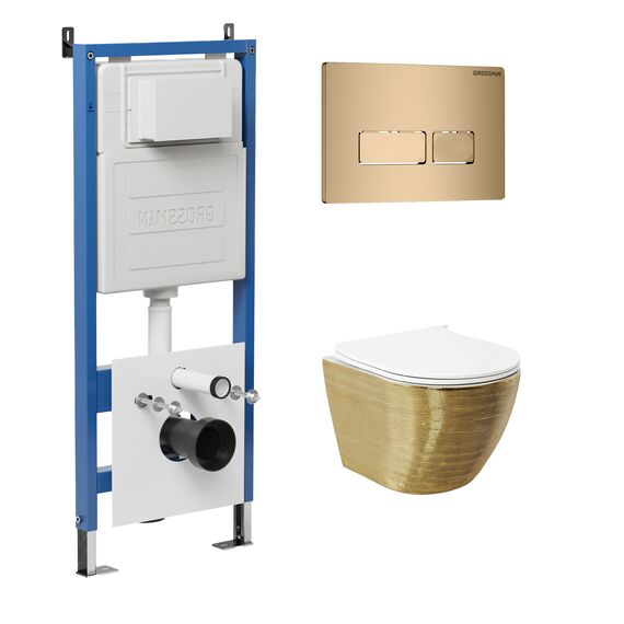 Комплект 3 в 1: Grossman инсталляция 900.K31.01.000+клавиша 700.K31.03.310.310 золото матовый+унитаз GR-4455GWS, 3 места