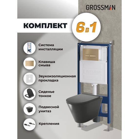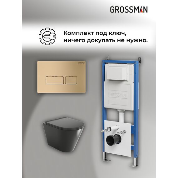 Комплект 3 в 1: Grossman инсталляция 900.K31.01.000+клавиша 700.K31.03.310.310 золото матовый+унитаз GR-4477BMS, 3 места