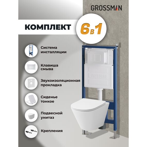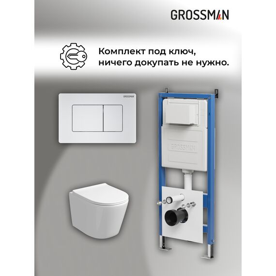 Комплект 3 в 1: Grossman инсталляция 900.K31.01.000+клавиша 700.K31.04.01M.01M белый матовый+унитаз GR-4477SQ, 3 места