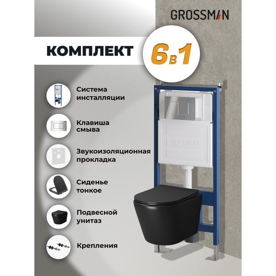 Комплект 3 в 1: Grossman инсталляция 900.K31.01.000+клавиша 700.K31.04.10M.10M хром глянцевый+унитаз GR-4478BMS, 3 места