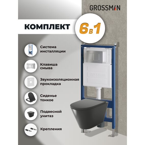 Комплект 3 в 1: Grossman инсталляция 900.K31.01.000+клавиша 700.K31.04.12M.12M хром сатиновый+унитаз GR-4477BMS, 3 места