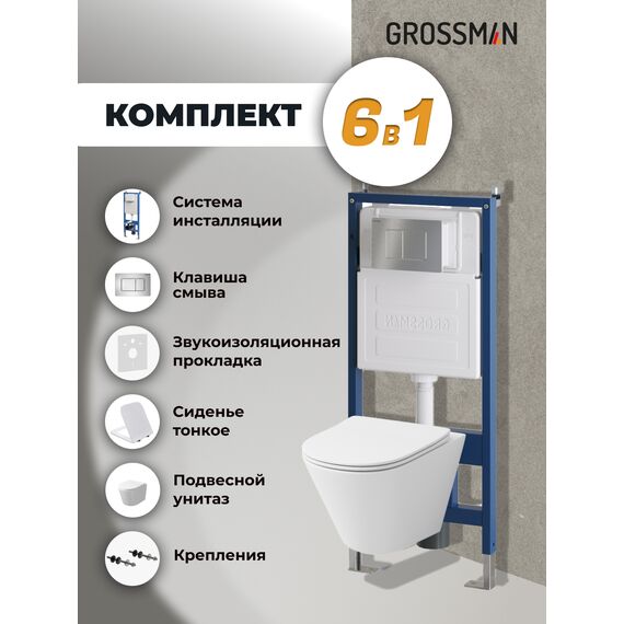 Комплект 3 в 1: Grossman инсталляция 900.K31.01.000+клавиша 700.K31.04.12M.12M хром сатиновый+унитаз GR-4477SQ, 3 места