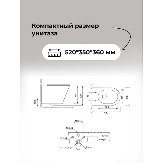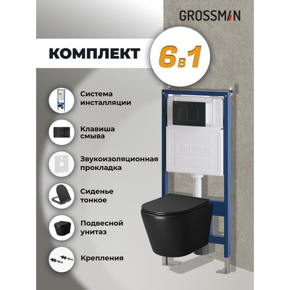 Комплект 3 в 1: Grossman инсталляция 900.K31.01.000+клавиша 700.K31.04.21M.21M черный матовый+унитаз GR-4478BMS, 3 места