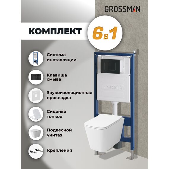 Комплект 3 в 1: Grossman инсталляция 900.K31.01.000+клавиша 700.K31.04.21M.21M черный матовый+унитаз GR-4479SQ, 3 места