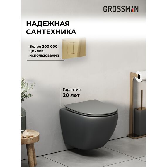 Комплект 3 в 1: Grossman инсталляция 900.K31.01.000+клавиша 700.K31.04.30M.30M золото глянцевый+унитаз GR-4455GMS, 3 места