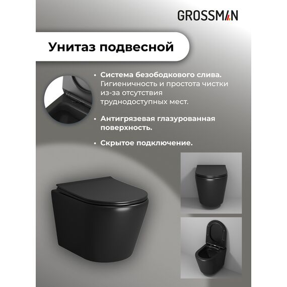 Комплект 3 в 1: Grossman инсталляция 900.K31.01.000+клавиша 700.K31.04.30M.30M золото глянцевый+унитаз GR-4478BMS, 3 места