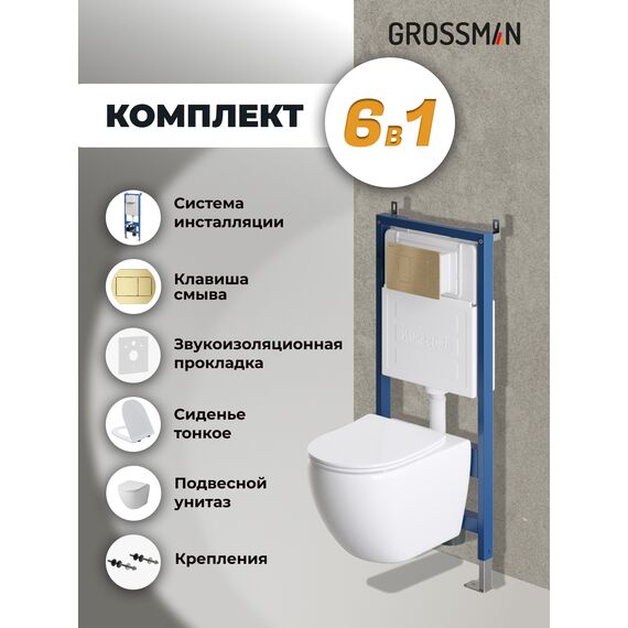 Комплект 3 в 1: Grossman инсталляция 900.K31.01.000+клавиша 700.K31.04.32M.32M золото сатиновый+унитаз GR-4411S, 3 места