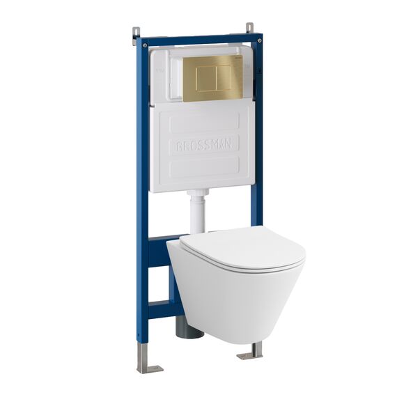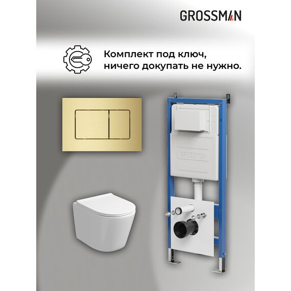 Комплект 3 в 1: Grossman инсталляция 900.K31.01.000+клавиша 700.K31.04.32M.32M золото сатиновый+унитаз GR-4477SQ, 3 места