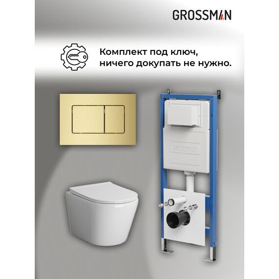 Комплект 3 в 1: Grossman инсталляция 900.K31.01.000+клавиша 700.K31.04.32M.32M золото сатиновый+унитаз GR-4478S, 3 места