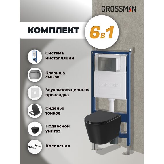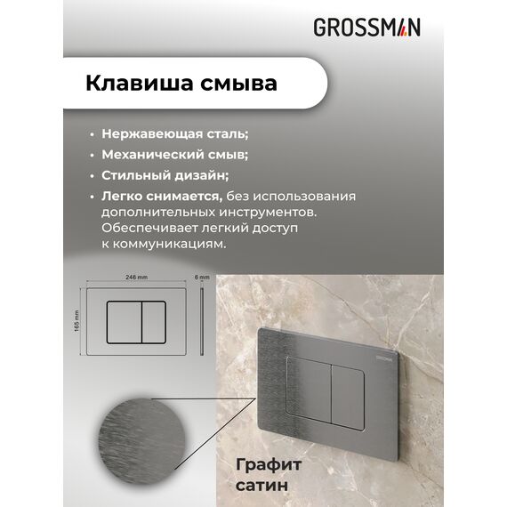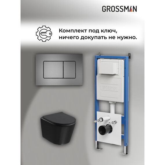Комплект 3 в 1: Grossman инсталляция 900.K31.01.000+клавиша 700.K31.04.42M.42M графит сатиновый+унитаз GR-4477BMSQ, 3 места