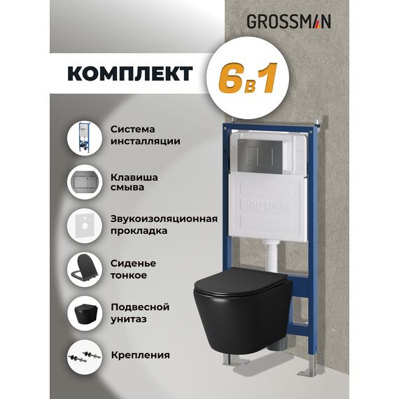 Комплект 3 в 1: Grossman инсталляция 900.K31.01.000+клавиша 700.K31.04.42M.42M графит сатиновый+унитаз GR-4478BMS, 3 места
