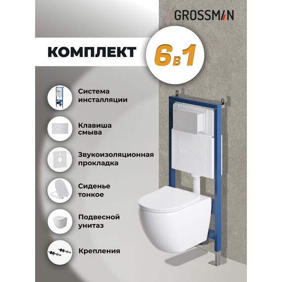 Комплект 3 в 1: Grossman инсталляция 900.K31.01.000+клавиша 700.K31.05.01M.01M белый матовый+унитаз GR-4411S, 3 места