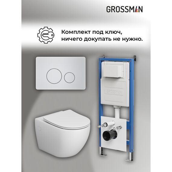 Комплект 3 в 1: Grossman инсталляция 900.K31.01.000+клавиша 700.K31.05.01M.01M белый матовый+унитаз GR-4411SQ, 3 места