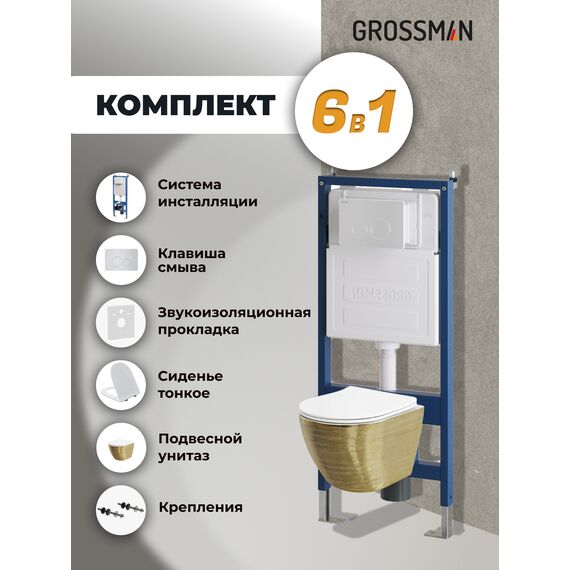 Комплект 3 в 1: Grossman инсталляция 900.K31.01.000+клавиша 700.K31.05.01M.01M белый матовый+унитаз GR-4455GWS, 3 места