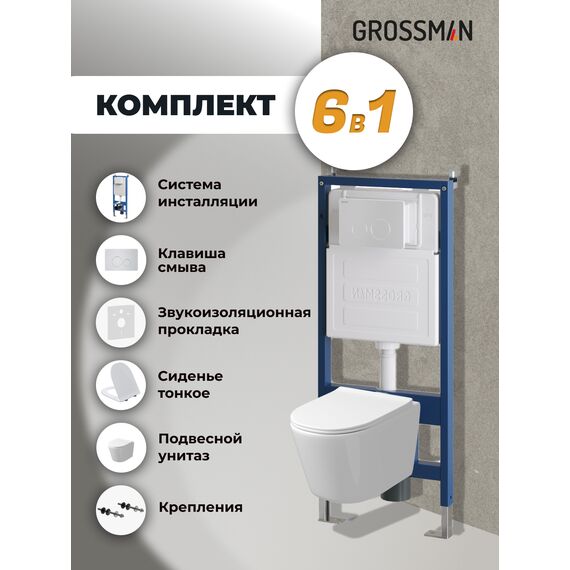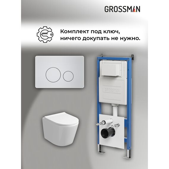 Комплект 3 в 1: Grossman инсталляция 900.K31.01.000+клавиша 700.K31.05.01M.01M белый матовый+унитаз GR-4477SQ, 3 места