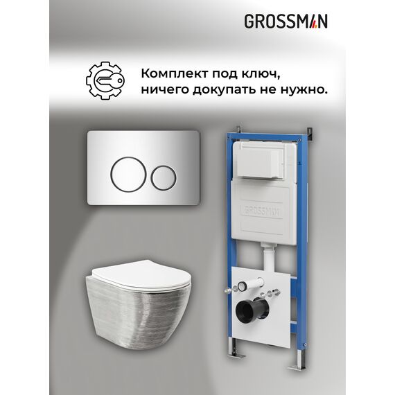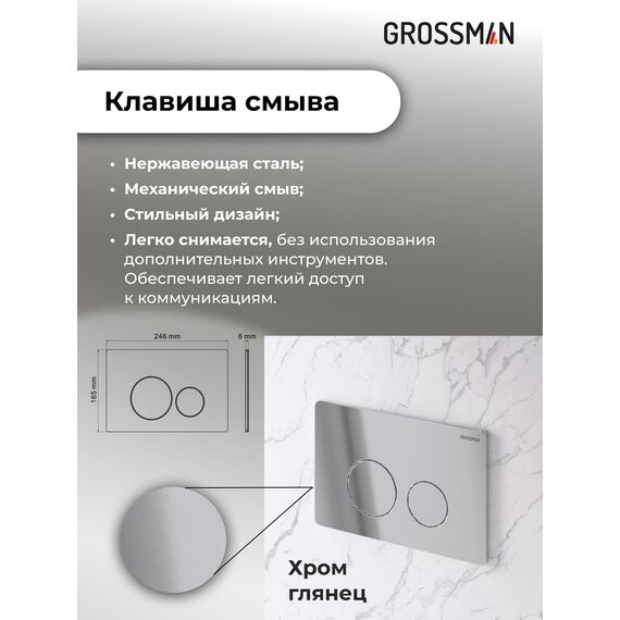 Комплект 3 в 1: Grossman инсталляция 900.K31.01.000+клавиша 700.K31.05.10M.10M хром глянцевый+унитаз GR-4455SWS, 3 места