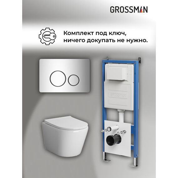 Комплект 3 в 1: Grossman инсталляция 900.K31.01.000+клавиша 700.K31.05.10M.10M хром глянцевый+унитаз GR-4478S, 3 места