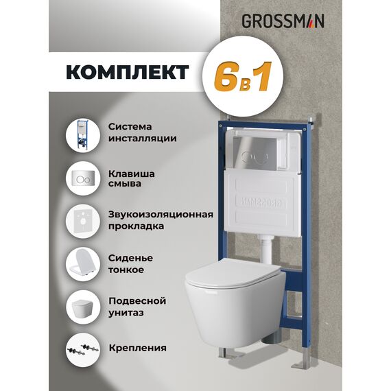 Комплект 3 в 1: Grossman инсталляция 900.K31.01.000+клавиша 700.K31.05.10M.10M хром глянцевый+унитаз GR-4478SQ, 3 места