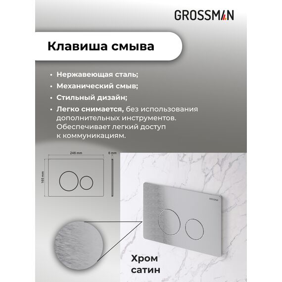Комплект 3 в 1: Grossman инсталляция 900.K31.01.000+клавиша 700.K31.05.12M.12M хром сатиновый+унитаз GR-4455S, 3 места