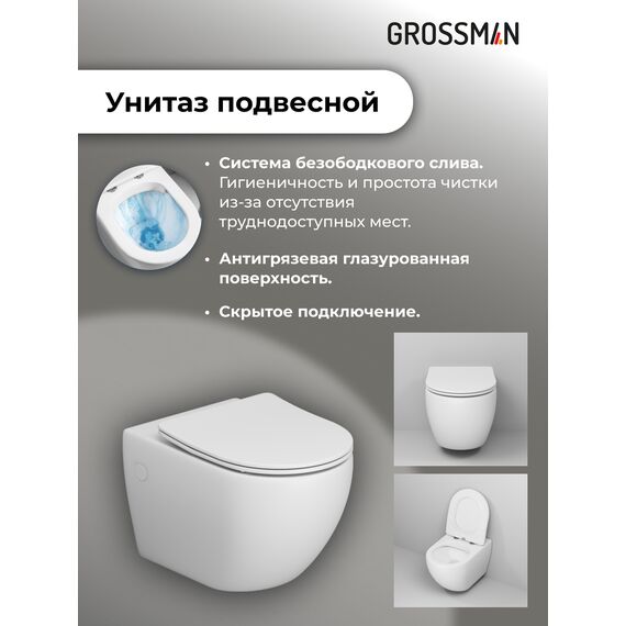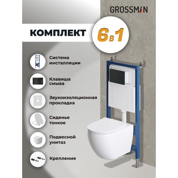 Комплект 3 в 1: Grossman инсталляция 900.K31.01.000+клавиша 700.K31.05.21M.21M черный матовый+унитаз GR-4411S, 3 места