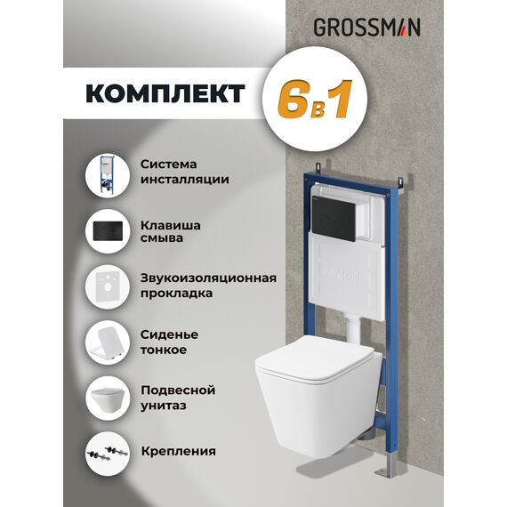 Комплект 3 в 1: Grossman инсталляция 900.K31.01.000+клавиша 700.K31.05.21M.21M черный матовый+унитаз GR-4441S, 3 места