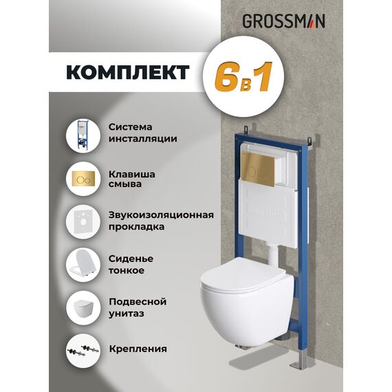 Комплект 3 в 1: Grossman инсталляция 900.K31.01.000+клавиша 700.K31.05.30M.30M золото глянцевый+унитаз GR-4455S, 3 места