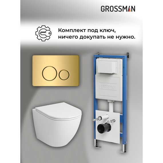 Комплект 3 в 1: Grossman инсталляция 900.K31.01.000+клавиша 700.K31.05.30M.30M золото глянцевый+унитаз GR-4455SQ, 3 места