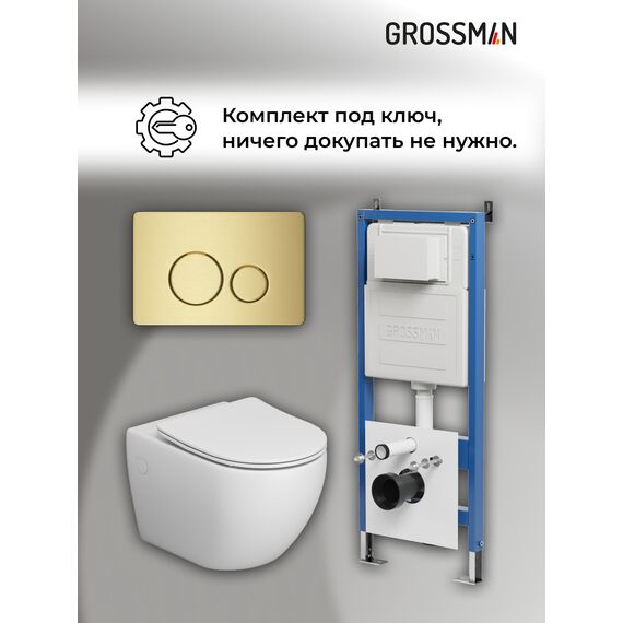 Комплект 3 в 1: Grossman инсталляция 900.K31.01.000+клавиша 700.K31.05.32M.32M золото сатиновый+унитаз GR-4411S, 3 места