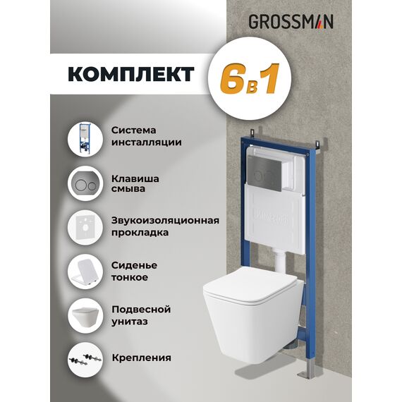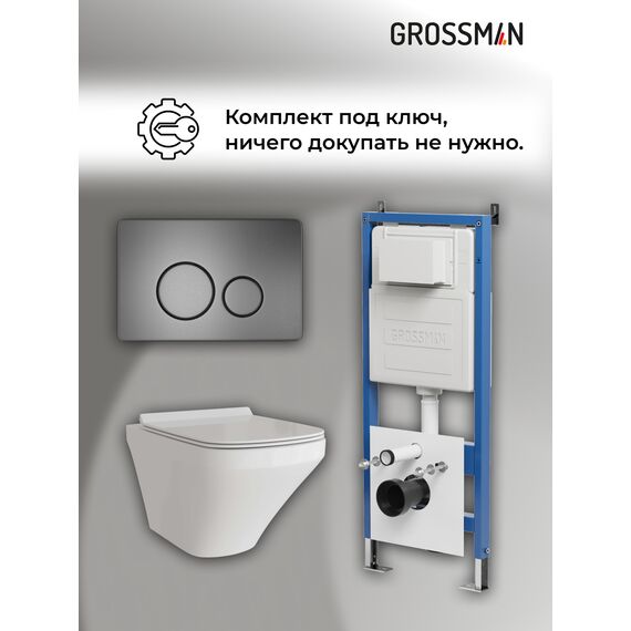 Комплект 3 в 1: Grossman инсталляция 900.K31.01.000+клавиша 700.K31.05.42M.42M графит сатиновый+унитаз GR-4441S, 3 места