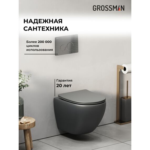 Комплект 3 в 1: Grossman инсталляция 900.K31.01.000+клавиша 700.K31.05.42M.42M графит сатиновый+унитаз GR-4455GMS, 3 места