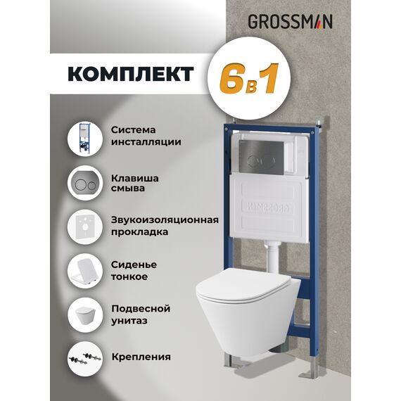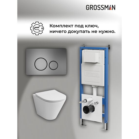 Комплект 3 в 1: Grossman инсталляция 900.K31.01.000+клавиша 700.K31.05.42M.42M графит сатиновый+унитаз GR-4477S, 3 места