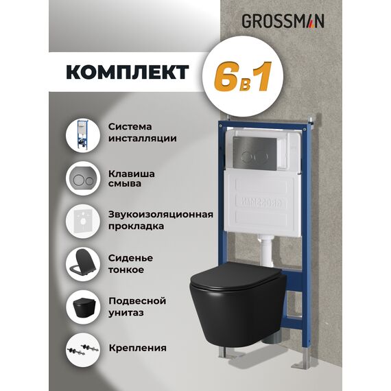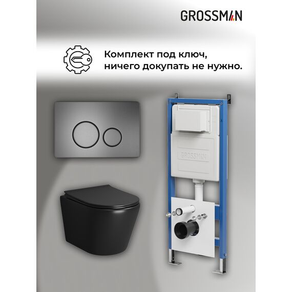 Комплект 3 в 1: Grossman инсталляция 900.K31.01.000+клавиша 700.K31.05.42M.42M графит сатиновый+унитаз GR-4478BMS, 3 места