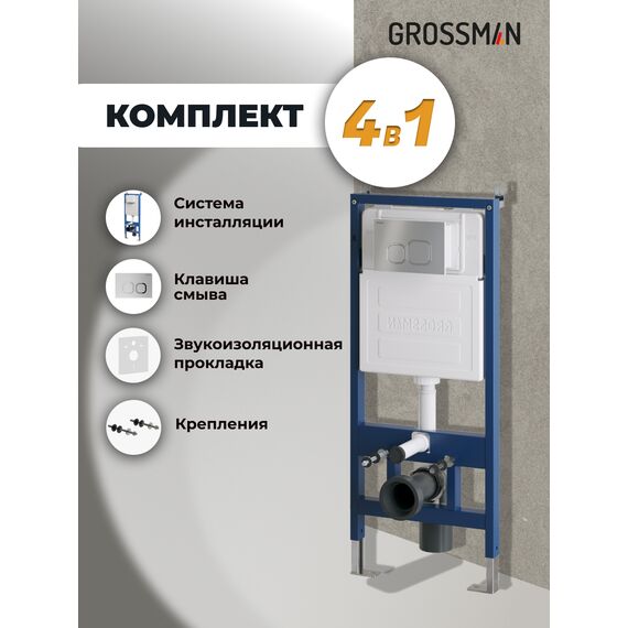 Комплект 2 в 1: Grossman инсталляция Cosmo 900.K31.01.000+клавиша смыва 700.K31.02.110.110 хром матовый,2 места