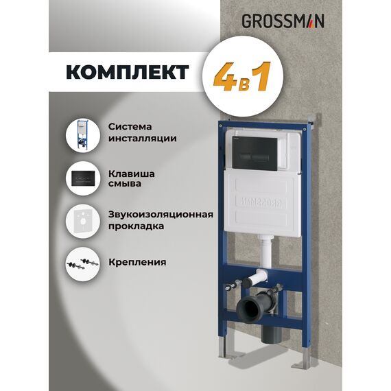 Комплект 2 в 1: Grossman инсталляция Pragma 900.K31.01.000+клавиша смыва 700.K31.03.210.210 черный матовый,2 места
