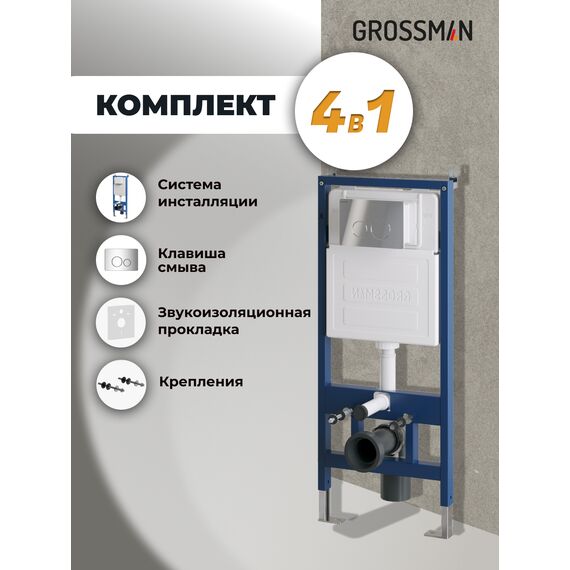 Комплект 2 в 1: Grossman инсталляция Style 900.K31.01.000+клавиша смыва 700.K31.05.10M.10M хром глянцевый,2 места
