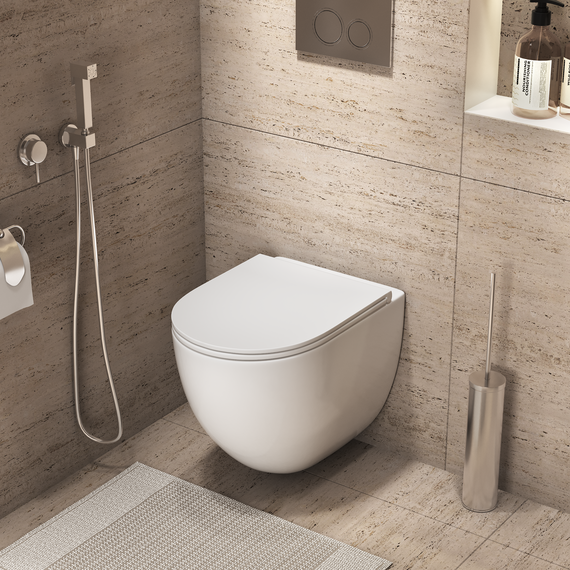 - Система антивсплеск предотвращает попадание брызг за пределы ободка унитаза;