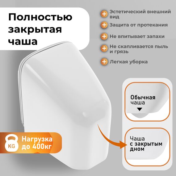 - Система антивсплеск предотвращает попадание брызг за пределы ободка унитаза;